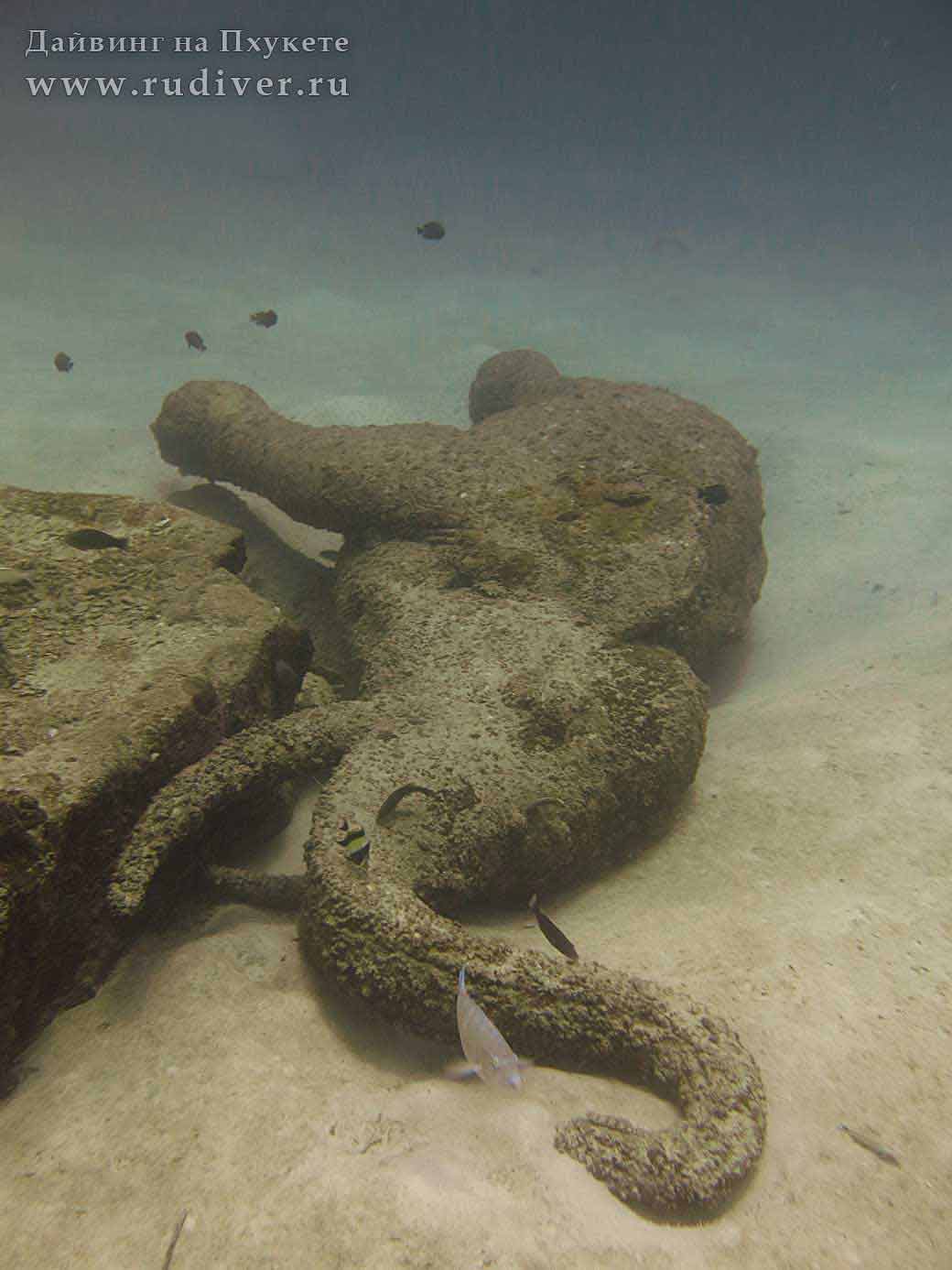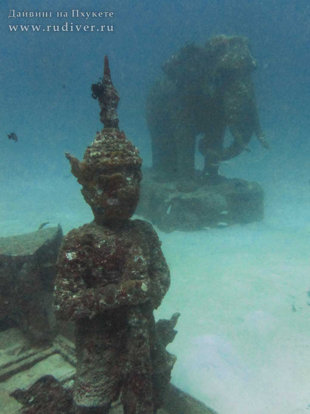В каждой шутке есть доля правды. Официально сообщаем, что по территории Таиланда, а тем более по окрестностям Пхукета, не проезжал Чингиз Хан на боевом слоне. Но тем не менее, каменные слоны и воины действительно покоятся на дайв-сайте Сиам Бэй в одноименной бухте острова Рача Яй. Группа монументов является памятником цунами. Приглашаем сертифицированных дайверов посетить этот уникальный подводный музей, а также другие дайв-сайты островов Рача Яй, Рача Ной, Пхи-Пхи, заповедника Симиланских островов и прочие интересные места для дайвинга на Пхукете.